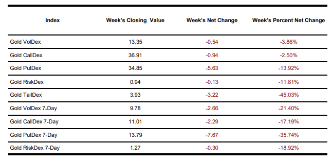 The enormous amounts of fear that had been injected into the market last week largely came undone this week with PutDex falling by 17.88% and TailDex falling 32.33% for the week and actually falling by 1.31% on Friday.
