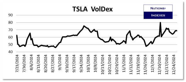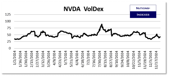 NVDA shares have seemed to defy gravity this year with the stock up 176.66% YTD. Congratulations if you’ve owned shares this year. Note VolDex in NVDA relatively low (just the 18th percentile of the 52- week range).